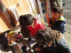 お地蔵様に小さいおててを合わせて‟なむなむ”したり