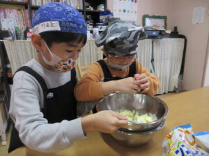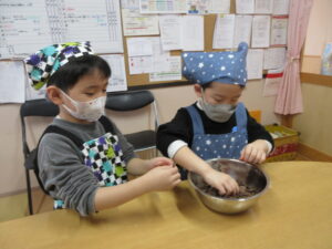 歌いながら楽しそうに混ぜる2人(*^_^*)♪