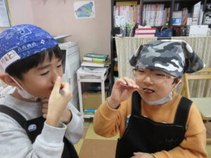 子「 ていねいに つくったら いいかな? 」と子どもたち(*^_^*)