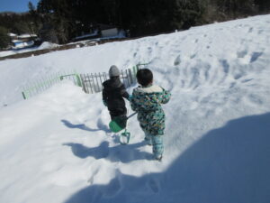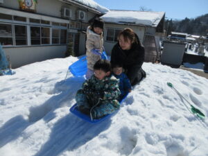 園庭に戻ってきてからは、大好きなそり滑りも楽しみました(^▽^)/